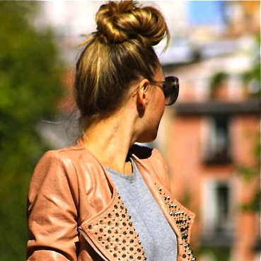 Brush all your hair up to top of your head and secure with band; then twist hair and drape around pony. For a cool top knot secure with bobby pins or cool barrette.