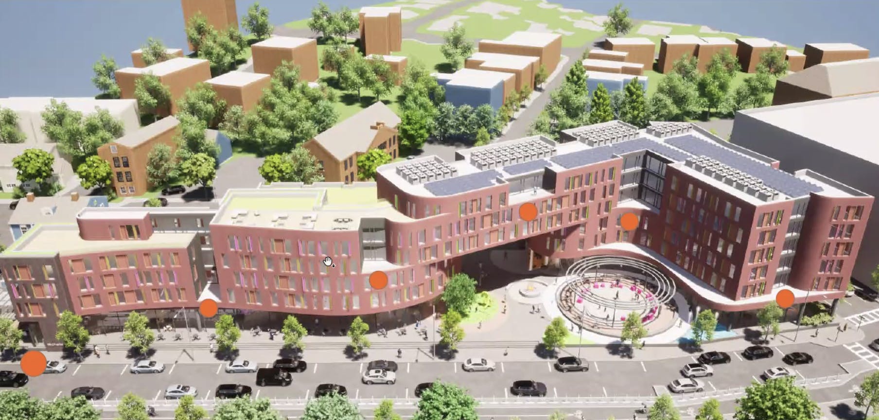 The Urbanica design is the best proposal of three–one senses that the Boston design firm has an architectural language beyond the typical developer schtick that the Commission has favored. Nevertheless, their apartment block needs considerable refining and some outright changes, so the final appearance is far from set. Concerns about the building’s bulkiness have already resulted in lowering the overall height; reducing the commercial space floor height from 13 to 8 feet will also mitigate the building mass. Ground-level passageways will flow through the building, and there is discussion about tweaking the brick and terra cotta wall coverings. Neighbors have asked the Commission for traffic and shadow studies.