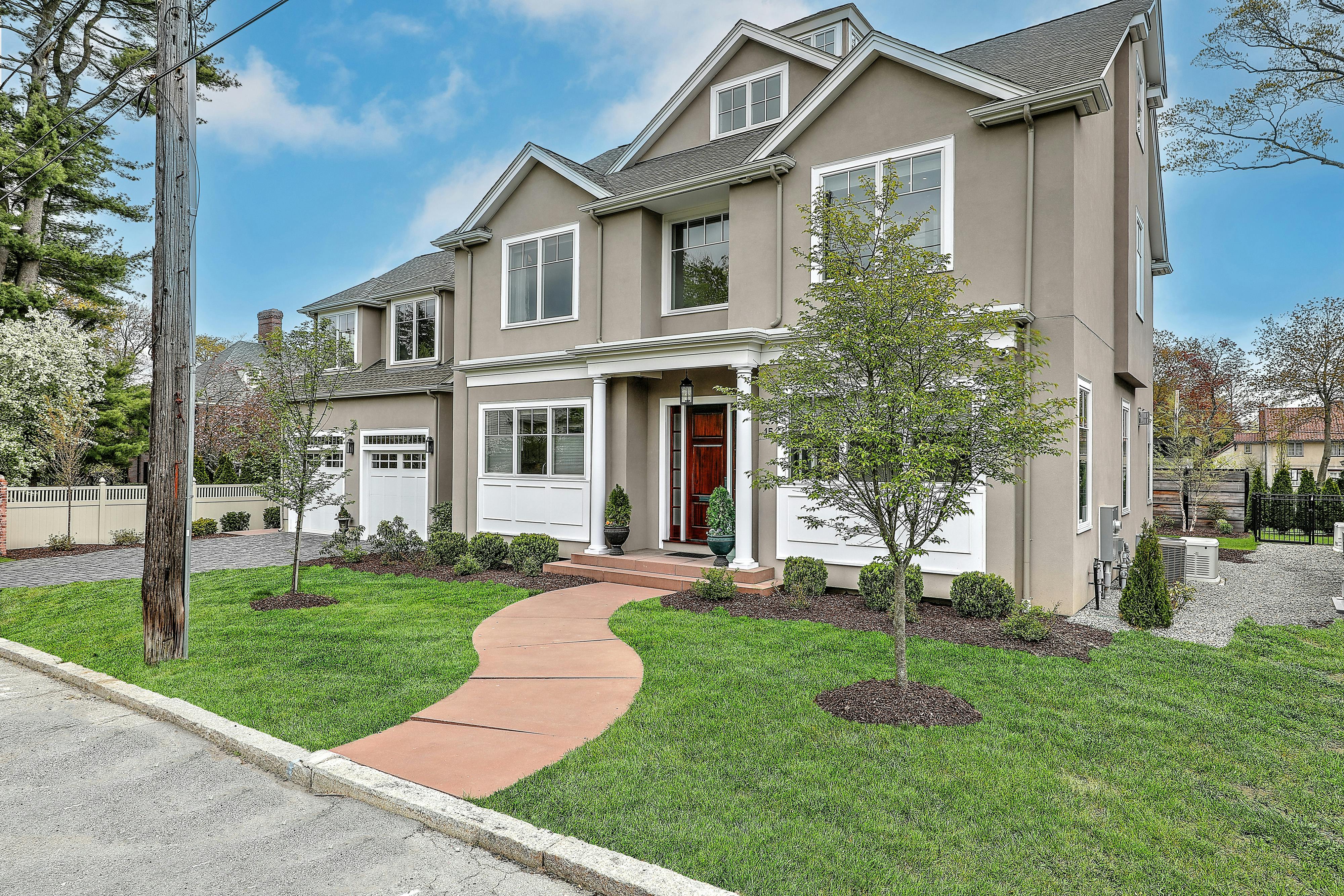 The mahogany front door leads to a soaring foyer and grand staircase, while the clean and modern aesthetic carries through the living room, dining room, and chef’s kitchen. Distinctive moldings and built-in cabinets enhance the spacious open floor plan, while dual rear decks overlook the private landscaped yard. A stylish in-law apartment provides a living area, kitchen, bedroom, full bath, and separate entrance. The second floor offers a fine array of sleeping quarters including a primary suite with dual baths and closets. The third floor meets a magnificent cupola at the top and leads to a spacious office, private bath, and generous living area for a truly gracious finish.