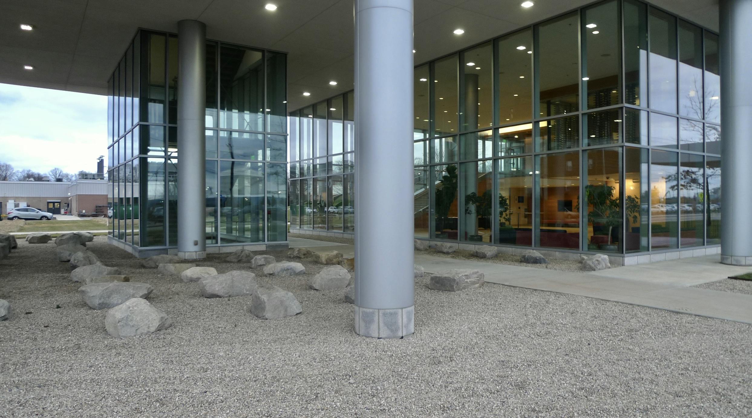 The CCCE sits on a berm composed of asphalt recycled from a parking lot that was here, while 90% of construction waste was diverted from landfills.