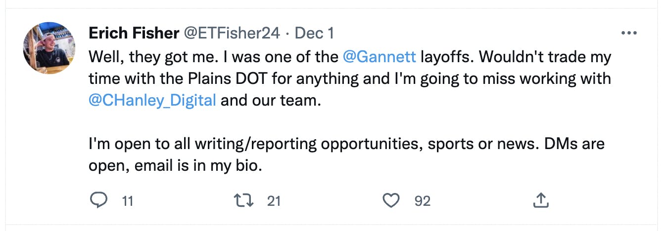 Twitter is loaded with Gannett reporters announcing they have been let go.