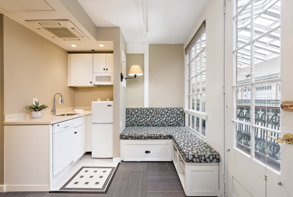 The dwellings feature built-in seating, bed frame, and storage. Equipped with a dishwasher, apartment sized refrigerator, microwave and wall mounted television, each unit is move-in ready. The upper residential floors are accessible by elevator or stairs, and common spaces are private and secure. The Arcade Providence offers bike storage and a ramp located on the lower level. Public transportation, such as the AMTRAK train and RIPTA bus system, is just a short walk away.