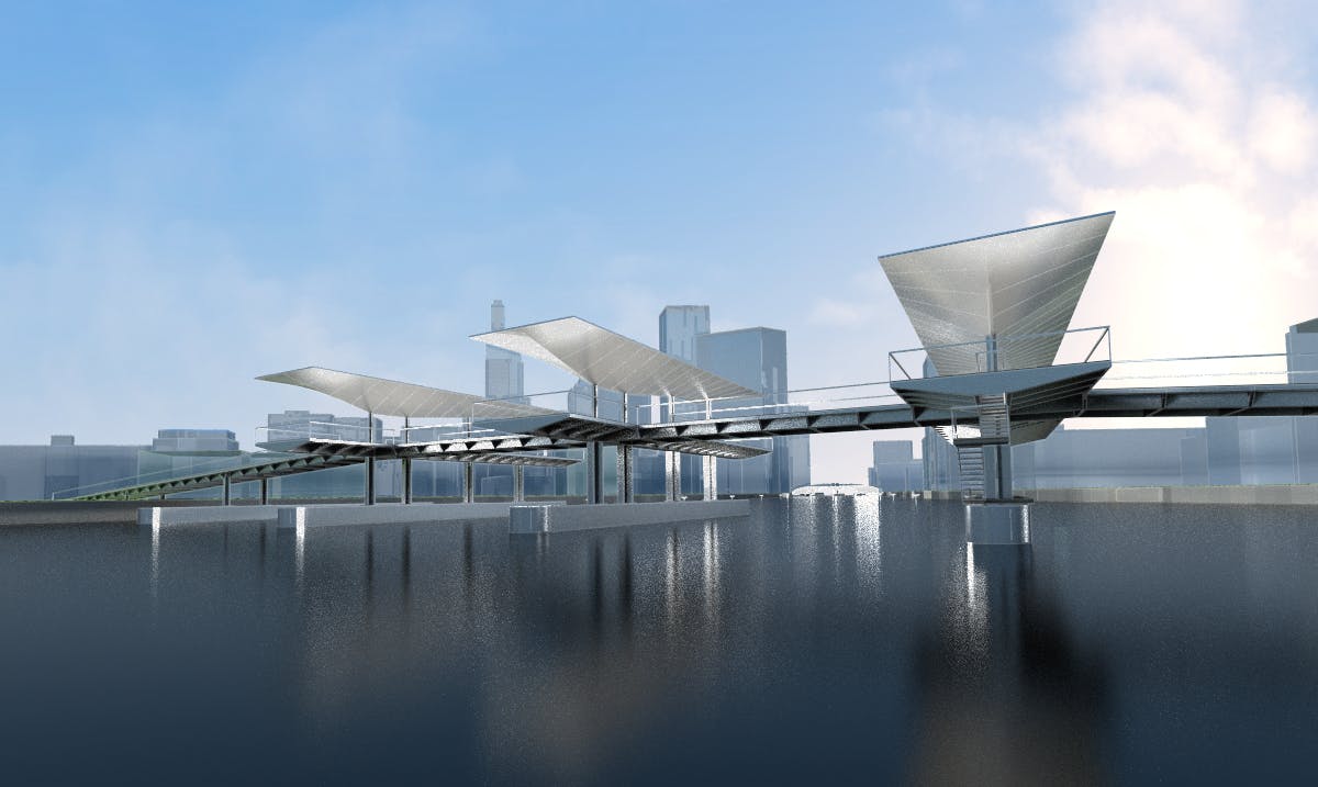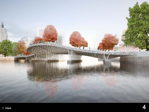 In linking the two shores of the river, the new footbridge will solidify the sense of reuniting two halves of downtown.