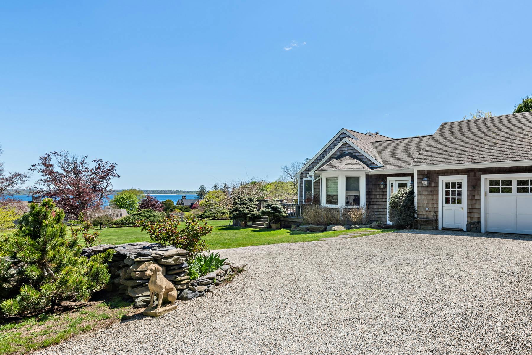 Beautiful water views and a deeded walking easement to the water from this three bedrooms and two and one-half bathrooms home. Two and a half acres of privacy nestled behind stone walls and with colorful gardens and mature landscaping. Open-concept living kitchen and living room with a separate dining room. Two bedrooms and two baths are located on the first floor allowing one level living.