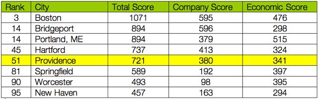 For Providence the news was good compared to almost all of the California cites that were clustered at the bottom. Traditional business meccas such as Los Angeles ranked 61, Indianapolis (71), Orlando (79), Tampa (80), and last ranked was Fresno at 102.