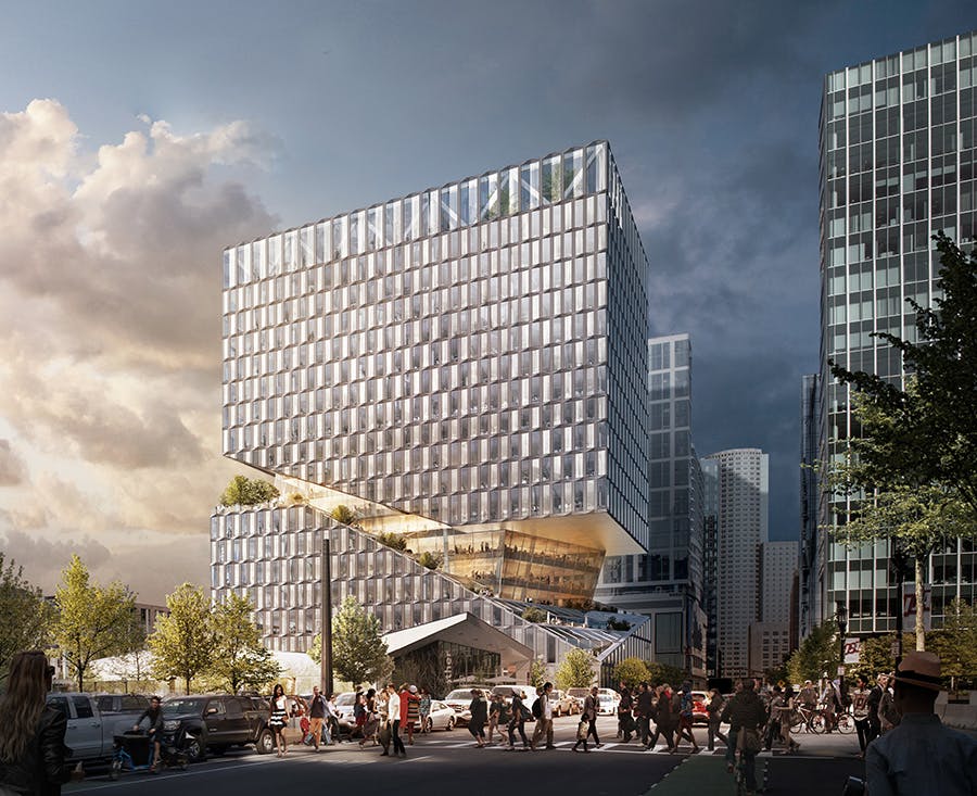 The characteristically dramatic REX gesture of a horizontal slice interrupting the building’s vertical thrust is also a major shortcoming. Although this contrasting glazed floor provides a grand viewing spot from which patrons can survey the campus, this floating plinth resulted in an awkward entry and a constricted main hall.