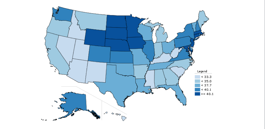 Rhode Island actually ranks #16 in America according to this report, at $38,400/year – a very respectable showing that even slightly bests low tax New Hampshire. Connecticut is at $46,200 (#3), Massachusetts is at $43,800 (#6), New Hampshire $38,300 (#17), Vermont $36,500 (#26), and Maine $34,600 (#33) to round out New England.