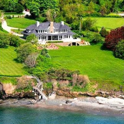 Fabulous waterfront compound w/sweeping Bay & bridge views from almost every rm!Custom built stone & shingle 4 bdrm/4.1 bath home PLUS legal 1 bdrm/1.1 bth carriage house,sandy beach, huge waterfrnt deck,DOCK,2 moorings.