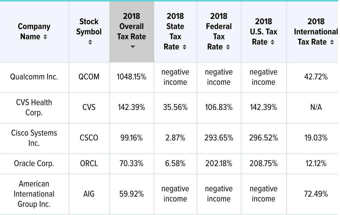 WalletHub analyzed annual reports for the S&P 100 — the largest and most established companies on the stock market — in order to determine the federal, state and international tax rates they paid in 2018.