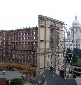 Masonic Temple project, courtesy of WJE Engineers:Preservation credits enabled the revival of downtown Providence, but were used everywhere in Rhode Island, where they deflected investment from new construction into the adaptive reuse of existing buildings. New construction often erodes the historical character that persists more in Rhode Island than almost every other state. Slowing half a century of suburbanizing trends, the preservation credits shifted the correlation of economic forces here, reviving urban areas and protecting greenfields. Indeed, the credits’ policy impact has been green, green, green!