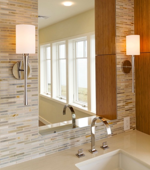 Almost every light fixture in my home is on a dimmer, and when I design lighting, this is a must. In the bathroom, it’s not terribly necessary, but you may want to consider it for a powder room that may be home to many guests at a party. Having the ability to adjust light levels, especially with overhead lighting, can give you an enormous amount of control over the way your space feels.