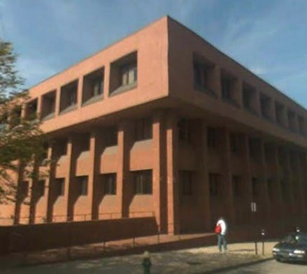 1971. Philip Johnson. There is a sort of faux nobility to this Brutalist Brown University building, whose pilotis (modernist jargon for columns) soar, if it is possible for concrete to soar, up three stories to uphold a thrusting fourth story that forms a sort of entablature (classical jargon for that which columns hold up) for this building, whose saw-blade rooftop literally scrapes the sky on the horizon of College Hill.