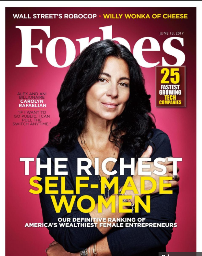 The Rafaelian feature is part of its cover story, "The Richest Self-Made Women" - and Rafaelian is featured on the cover.