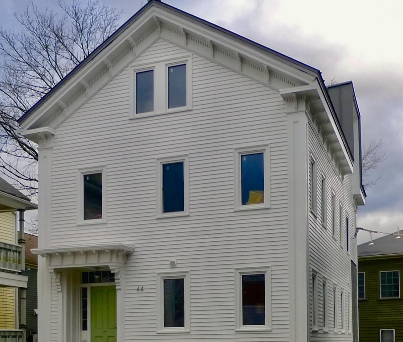 At 292 Wickenden Street, a 19th-century house was demolished for an out-of-scale block of rental units, although the builder did at least employ a gable roof that picks up the rhythm of its neighbors.