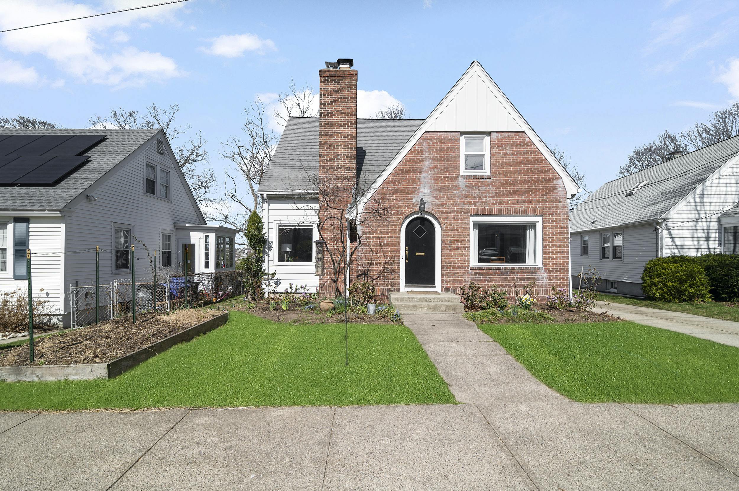 This eastern-facing 1940's cape, with a storybook Tudor brick front, has incredible curb appeal and soaks up the morning light. With hardwoods featured throughout, this bright, light, & airy home has a full-size dining room and ample kitchen ready to entertain family and friends again. A wood-burning fireplace is a ‘hygge’ reminder that you can cozy up when the weather gets cool again. Lovely living spaces on the main floor and two front-to-back bedrooms on the second. The full bath was recently remodeled with a heated tile floor and double sinks. The lower level provides an additional living space that would be a great home theatre, teenage space, or office.