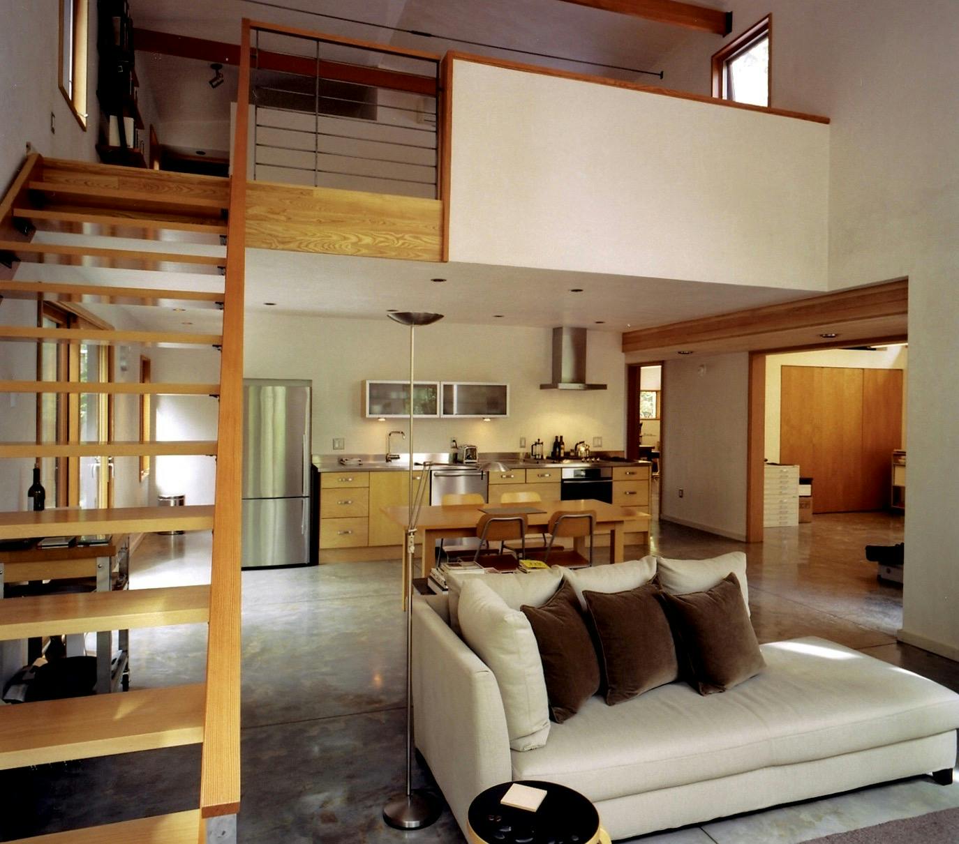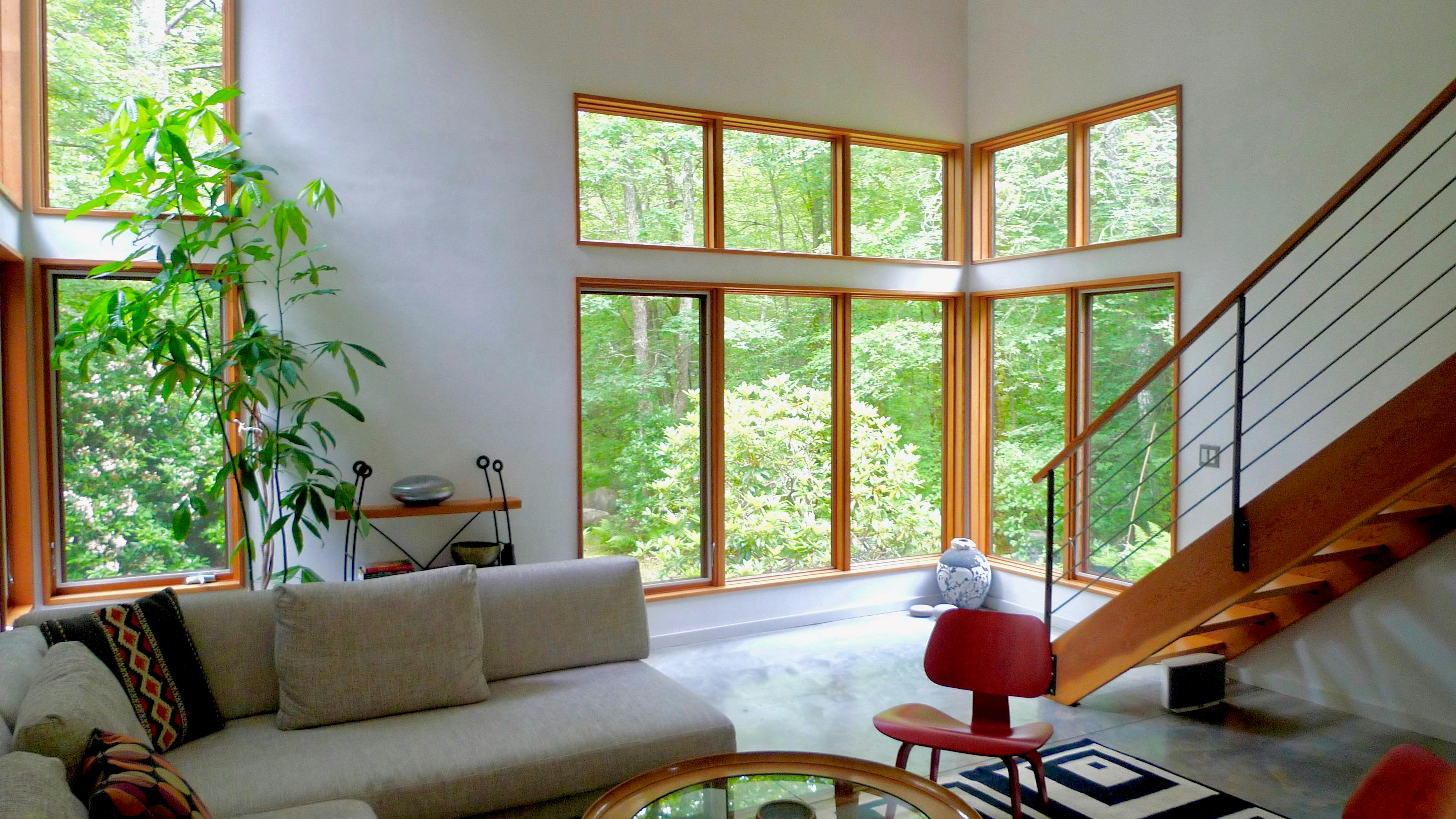 Rob and Uschi Yaffe, creators of Pawtucket’s Garden Grille and The Grange in Providence, bought the house when the original clients decamped to Maine, and converted what was a pair of studios to a den and a guest room. The open floor plan recalls Frank Lloyd Wright's most inexpensive houses; like them, it has a poured-concrete radiant heated floor, not to mentions varying ceiling heights to shape movement throughout the interior.