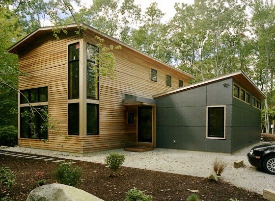 One of the most interesting of these new dwellings is a fifteen-year-old, 1,700 square foot house surrounded by two acres of the woods. It may be the town's the least costly, least ego-flexing, and most architecturally significant new home in recent memory. 6 Long Highway was actually built on a shoestring budget, by two artists in search of an idyllic retreat after years of loft living in Boston. (The house is just been put on the market, at lowest cost of any offering in Little Compton.)