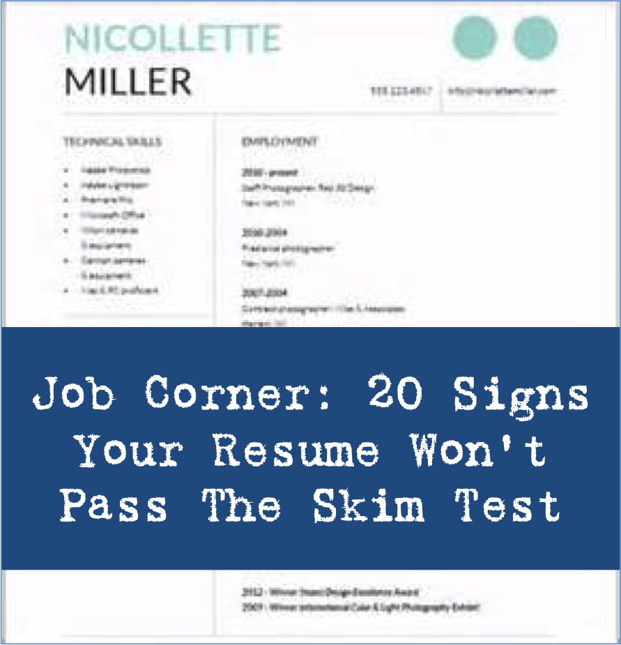 Job Corner: 20 Signs Your Resume Won’t Pass The Skim Test