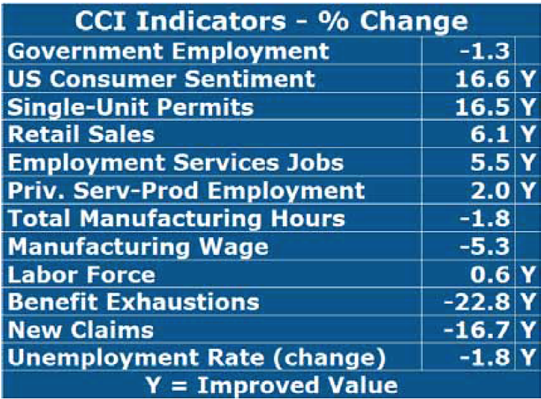 Rhode Island’s economy appears to be transitioning to a more rapid rate of economic growth based not only on two solid months of labor market data, but the fact that the CCI has now matched or exceeded its year-earlier value for the most recent four months. Most im-portantly, this is occurring in spite of the fact that our state literally did nothing for several years. What we are witnessing now are the combined forces of our state’s economy continuing to heal and the benefits we are deriving from national and neighboring state mo-mentum. The good news is that the recently enacted legislation should prolong this once its effects begin to be felt later this year.