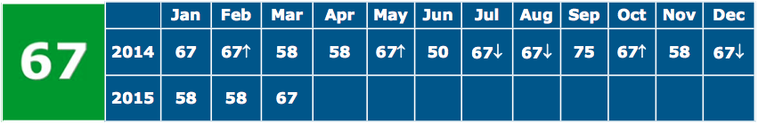 Len LardaroRhode Island’s March economic performance was slightly better than it was in February, although both months had varying degrees of weather-related distortions. The Current Conditions Index for March reached 67, its highest value thus far in 2015, as eight of the twelve CCI indicators improved relative to their values last March. And, in yet another potentially hopeful sign, the March CCI beat its value from a year ago, an illusive benchmark that we have been attempting to attain on a regular basis for far too long.