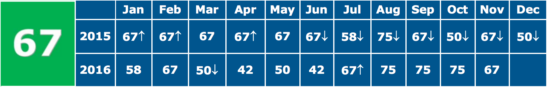 As we moved beyond the second quarter of 2016, Current Conditions Index values moved from 42’s and 50’s to 67’s and 75’s — reflective of a more substantial basis for our economic momentum. Furthermore, the CCI not only reached but managed to sustain its highest yearly values over the August through October period. Better yet, we began to observe something that occurs all too infrequently here — the CCI began a sustained period where it matched or exceeded its year-earlier values.