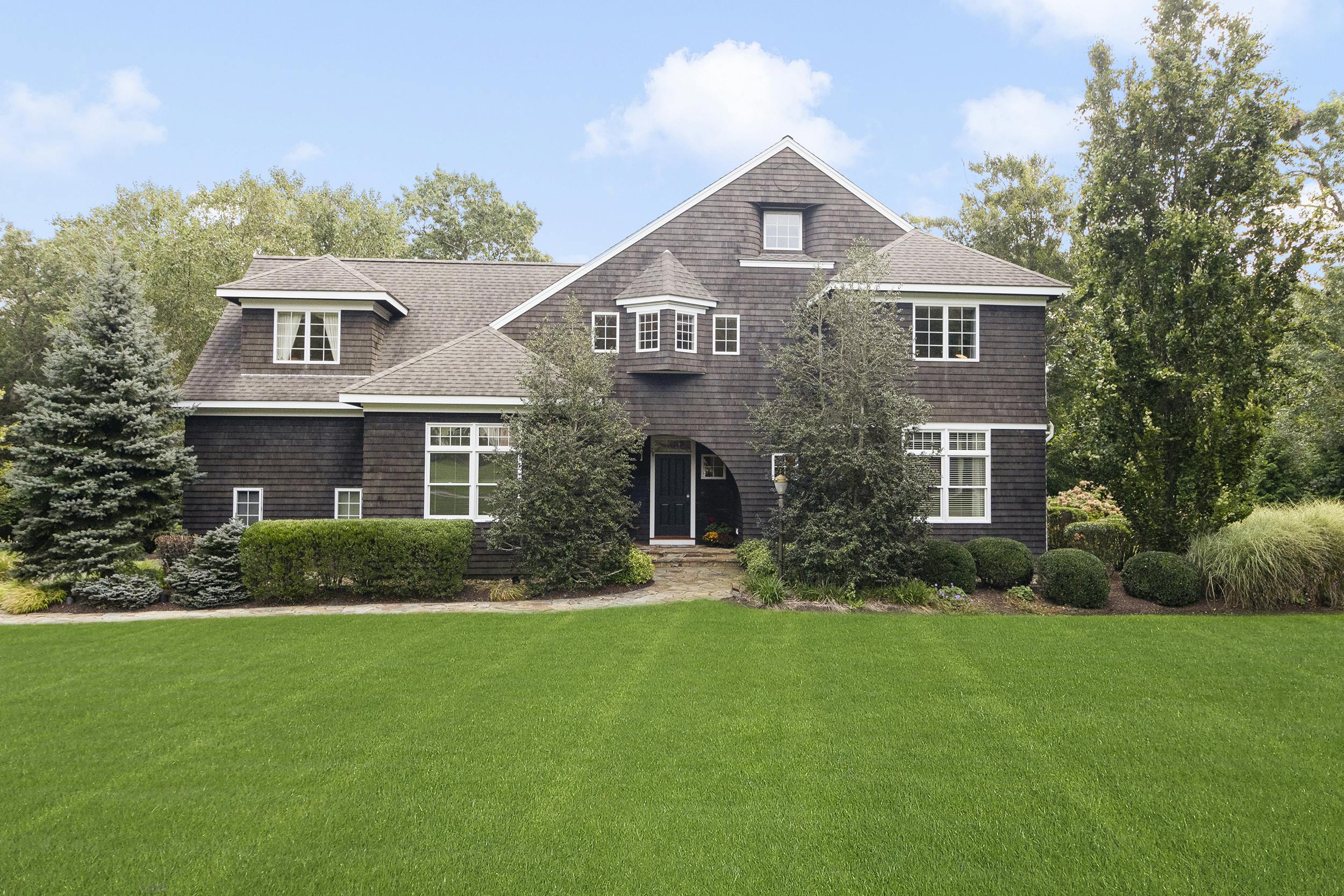 This Elegant Custom Shingle Style Traditional Home is situated on a 1.7 acre professionally landscaped and wooded lot in the highly desirable Beech Tree Hill neighborhood. The impressive open floor plan takes center stage on the main level with 9’ ceilings, crown moldings, and Bose home theater system. High-end well-appointed Chef’s kitchen, formal dining room, and spectacular great room with 60,000 BTU Mendota gas fireplace. The first-floor rooms include an office with hardwood floors, sunroom with southern exposure, breakfast nook with custom built-in hutch, laundry room, and a half bath. Hardwoods throughout on the second floor where you’ll find the primary bedroom with coffered ceiling, fireplace, rooftop deck, walk-in closet and elegant double sink bathroom with separate water closet, 3 additional bedrooms, a second full bath and sitting area complete this level. The same attention to detail prevails outdoors, the walk-out lower-level leads to in-ground self-cleaning heated Gunite pool with an attached hot tub. Professionally landscaped grounds with sprinkler system, private stone-walled patio, automatic outdoor landscape lighting, and outdoor sound system. Oversized two-car garage. This gorgeous property is located on a cul-de-sac and is nestled among other fine homes. Close to highway access, commuting to Providence or Newport is less than ½ an hour away, Boston is only an hour’s drive. The home includes a whole house generator.