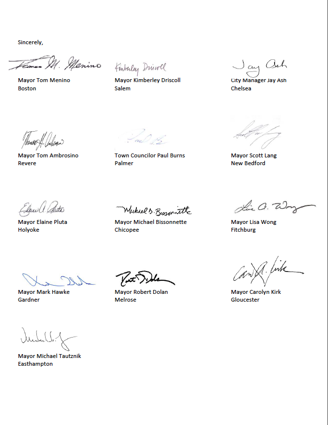 Earlier this week, the Mayors of 13 communities wrote a joint letter to Governor Deval Patrick, Speaker Robert DeLeo, and Senate President Therese Murray urging the Commonwealth to take action.