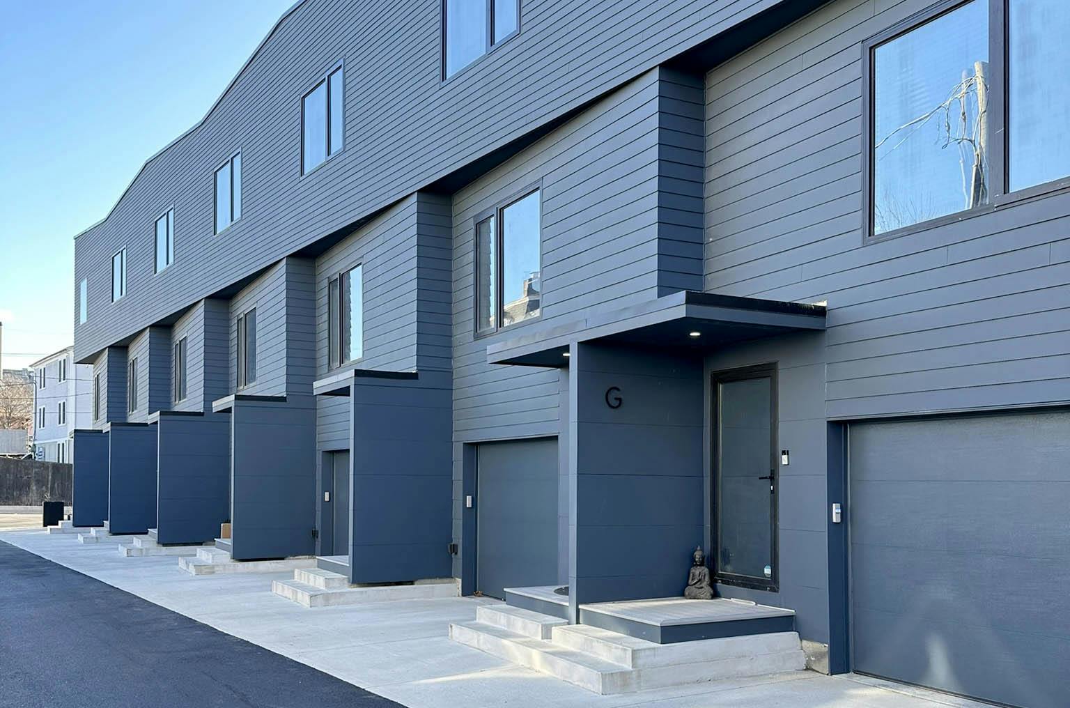 If one wants to know how handsome new housing can be built on Providence’s East Side without tearing down existing buildings, then take a look at the Matilda Overlook complex of townhouses and apartments soaring above Smithfield Avenue. The effort is led by developer Josh Chu and architect Jack Ryan. The two adjacent blocks containing seven townhouses and eleven apartments demonstrate how architecturally distinguished housing can be inserted into and enrich the existing urban fabric.