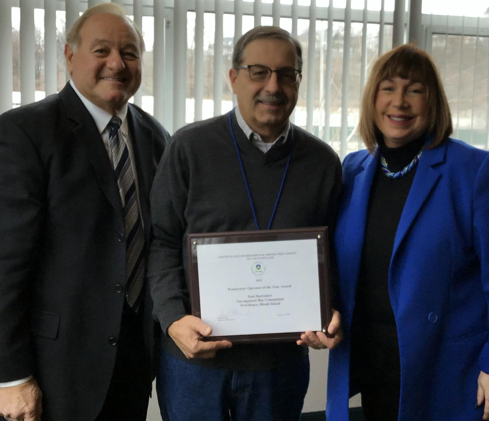 Desrosiers, who is an operator of the Narragansett Bay Commission clean water facilities at Field Point and Bucklin Point, was honored by EPA’s New England office with a 2019 Regional Wastewater Treatment Plant Operator of the Year Excellence Award for his outstanding work over decades operating and maintaining the Narragansett Bay Commission’s facilities.