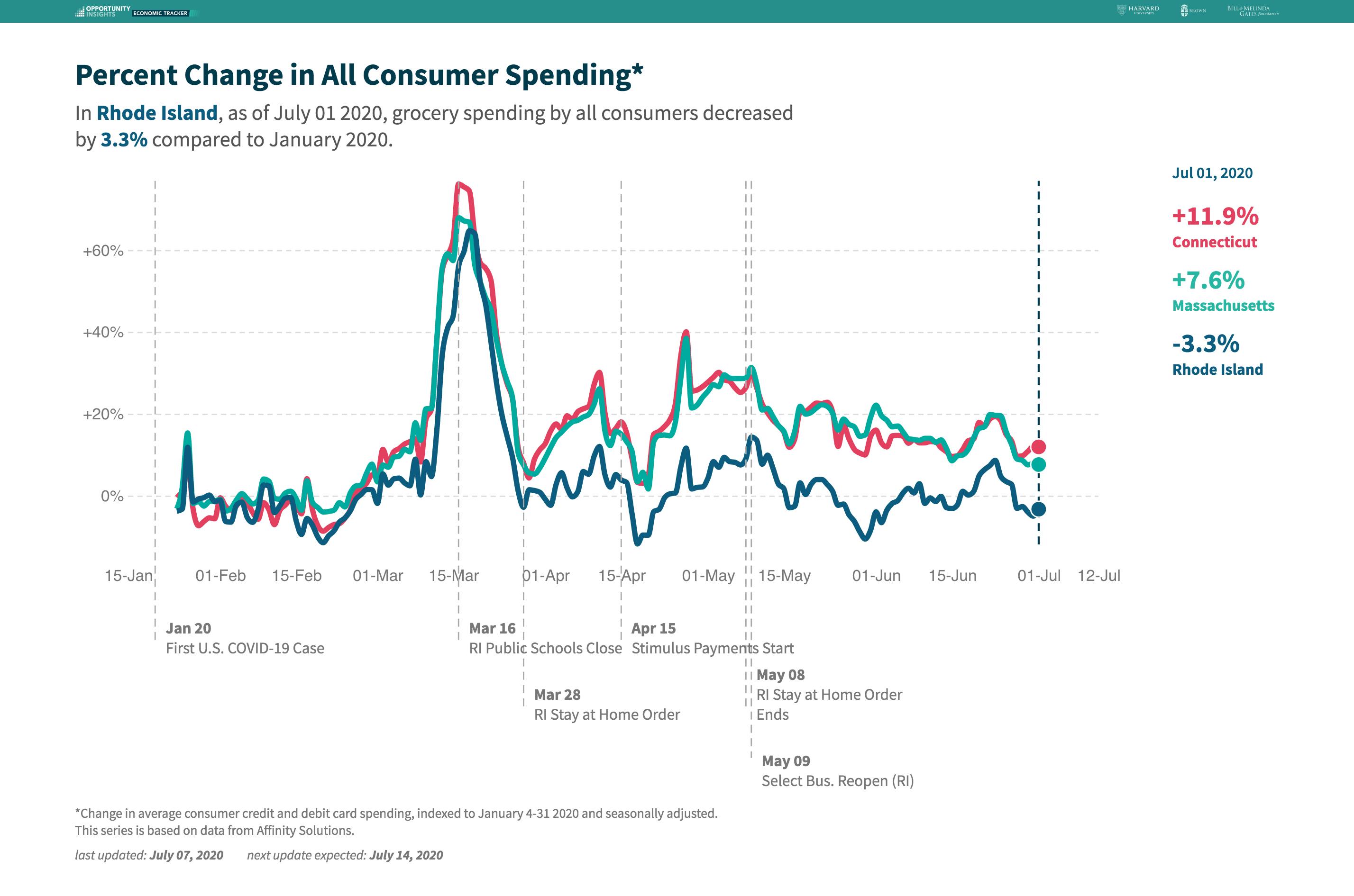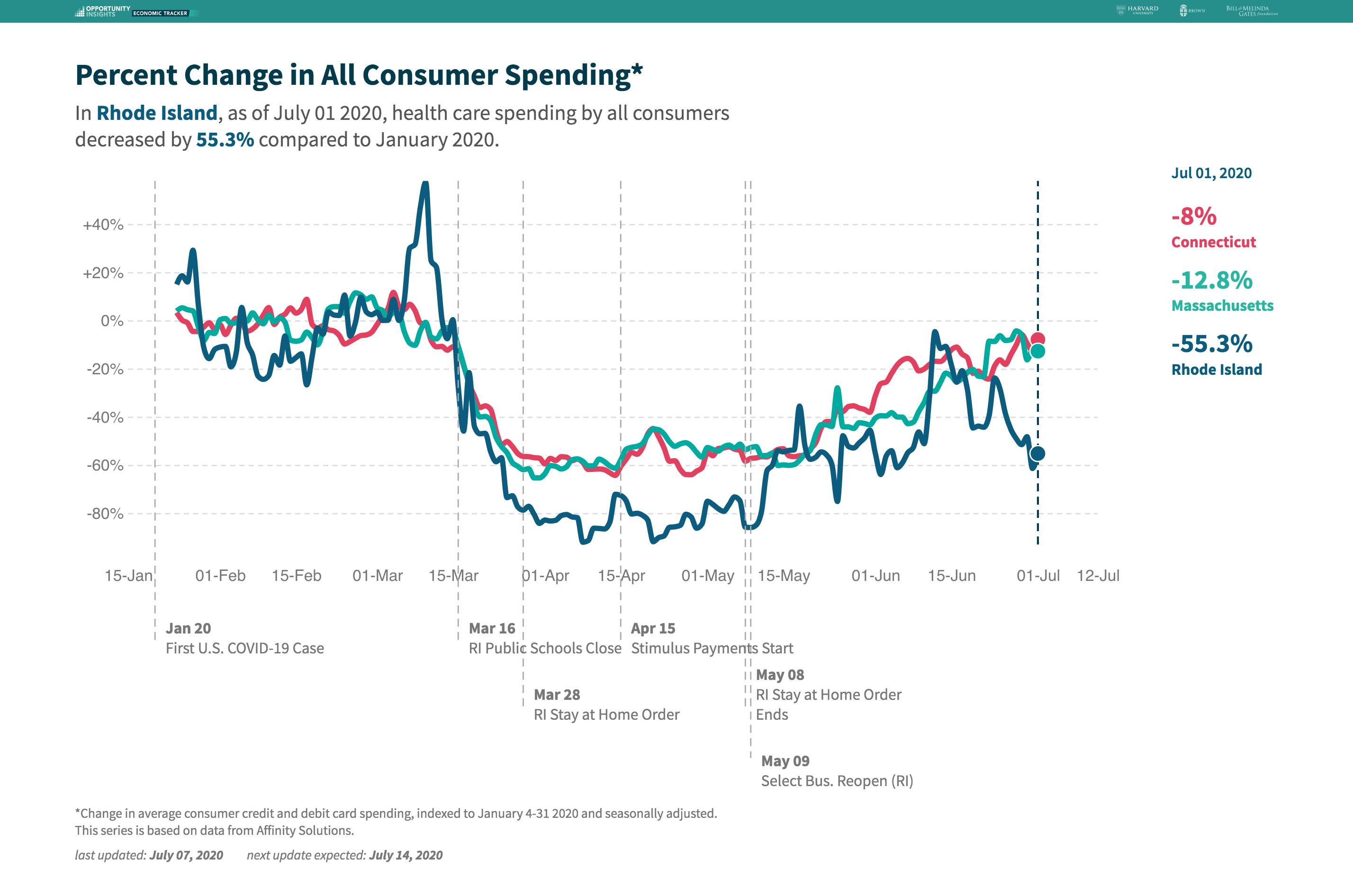 The data was developed by Opportunity Insights, a collaborative effort by MIT and Harvard and Brown University researchers which looks at the impact of the coronavirus on multiple business sectors.