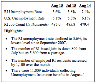 RI Unemployment Rate Dropped to 5.6 Percent in August