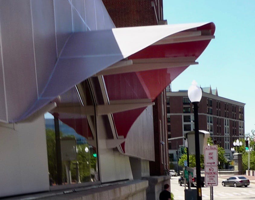The architects disingenuously claim that their giant metal eyebrow recalls "the arches of the historic buildings of Providence."