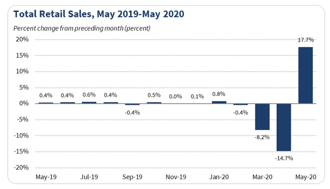 The surge in retail sales last month recouped 63% of March and April’s decreases. But the journey to recovery could be long and difficult as some parts of the country are experiencing a resurgence of COVID-19 infections. In addition, enhanced federal government unemployment checks will run out in July.