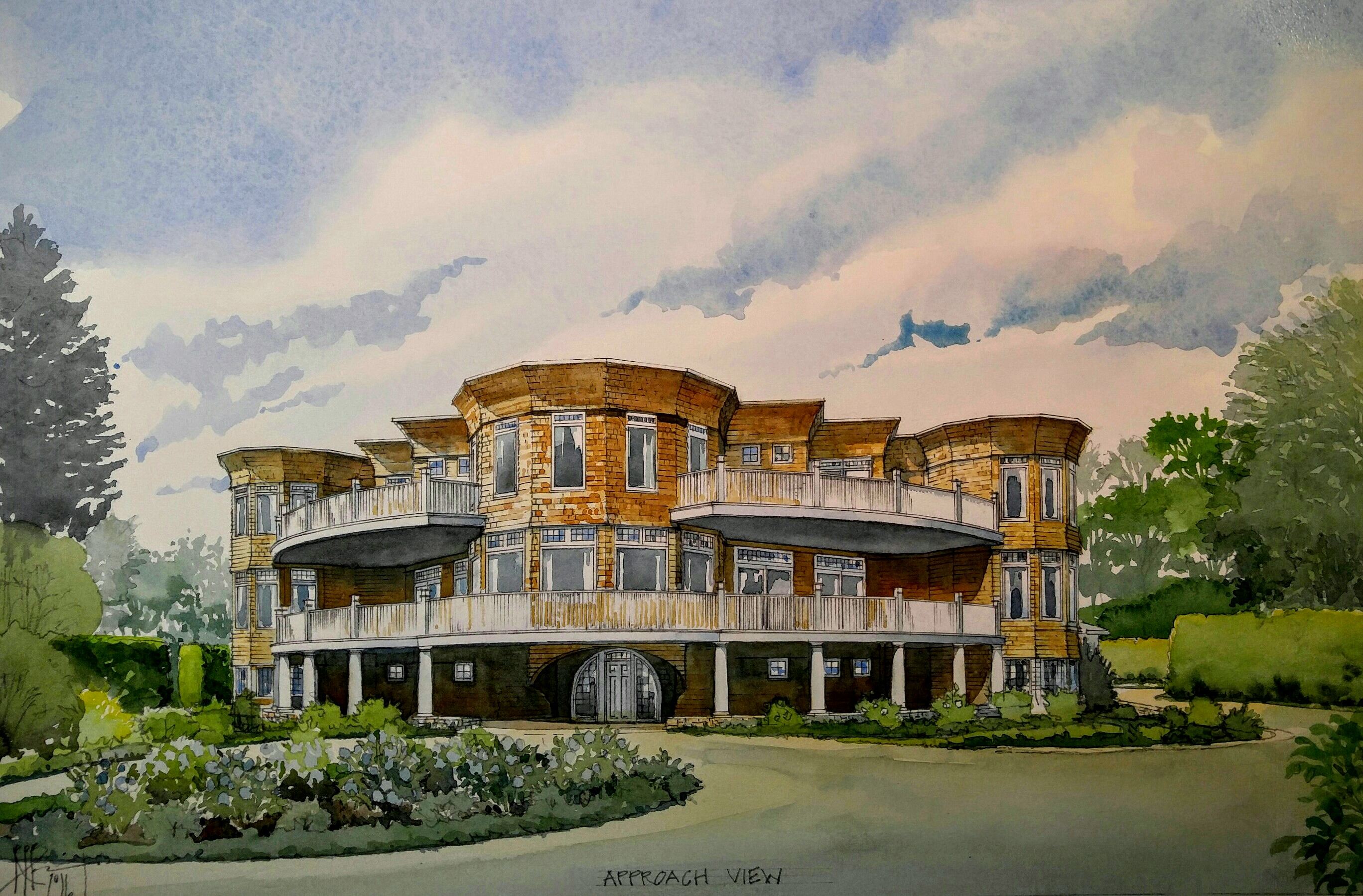 But an architectural giant of Hunt's stature was not chosen by James and Gina McCaffrey for their 55,000 square-foot double lot. Rather, Andrew DiGiammo's firm, Compass Group, has a reputation for producing workable if uninspiring houses, high schools, and corporate headquarters.