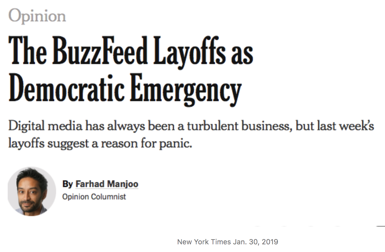 No, New York Times, BuzzFeed Layoffs Aren't a "Democratic Emergency": They're a Renewed Call to Act