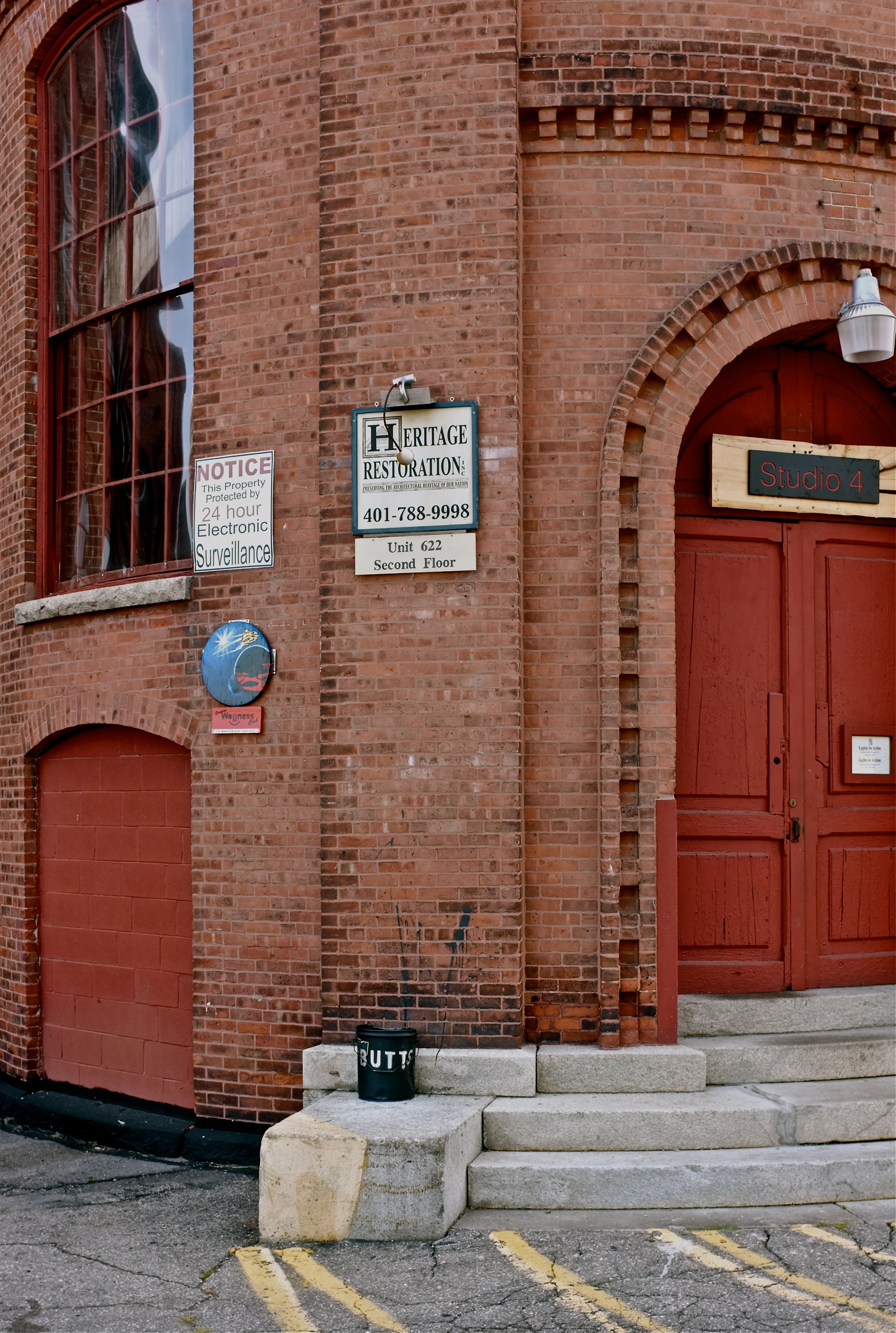 Founded as a delaine (worsted) mill in the 1850s, it flourished in the Civil War, and manufacturing here expanded to the big mill you see today. The first half was built in 1863 and the second added in 1882, with some ancillary structures built up until the turn of the twentieth century. Although the original company folded during the Panic of 1873, the subsequent Atlantic Mills became the largest worsted and cotton mill in the city, employing more than 2,000 people. Some manufacturing of cotton was done here until after World War II. Echoing the decline of the textile industry in New England, these mills are shadows of themselves, hanging on by hosting such various less-than-uptown enterprises, as a used furniture store, warehousing, and the odd business and designer's studio.