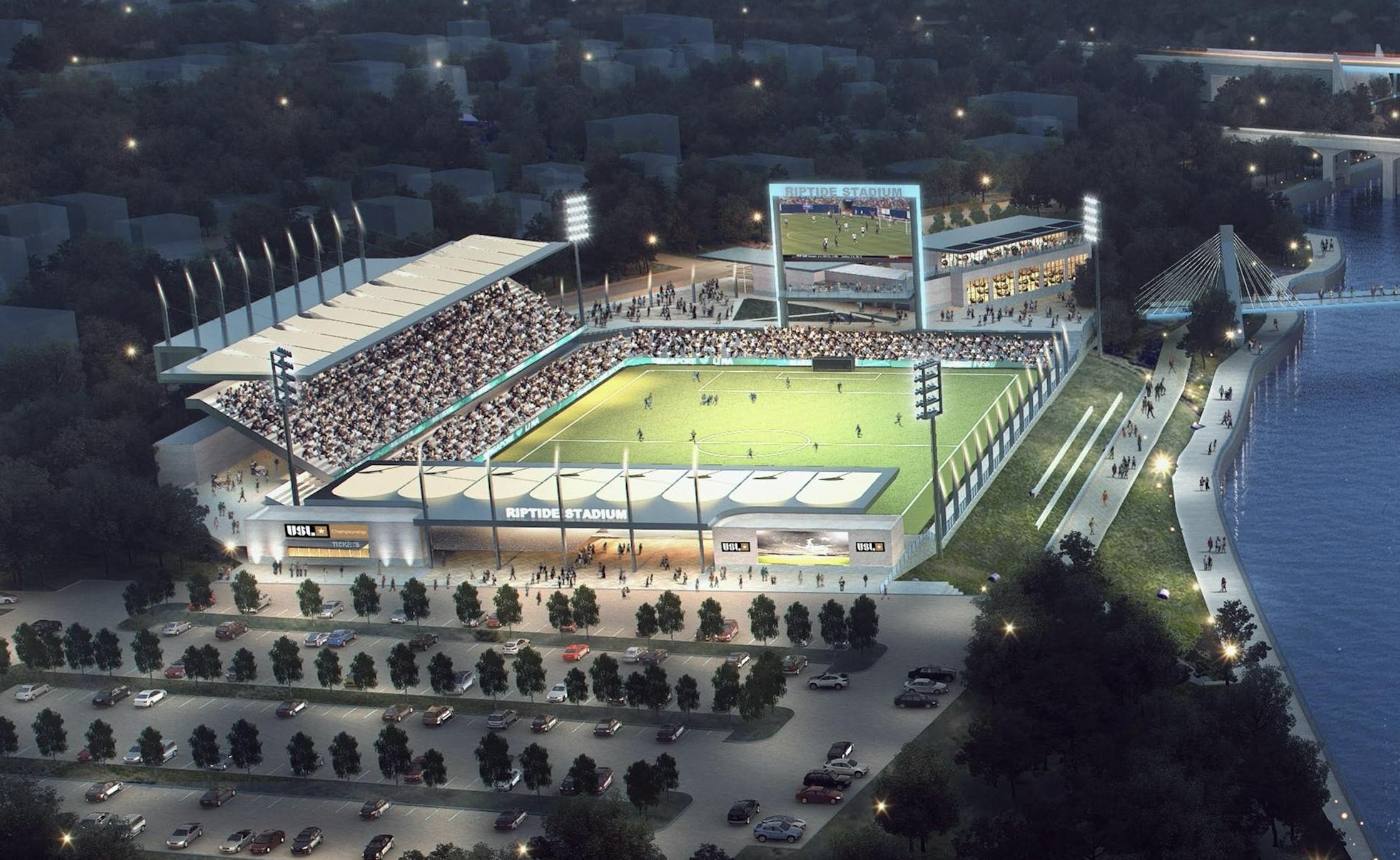 Tidewater Landing, a project of the New York developer Fortuitous Properties plans extensive housing, retail space, offices, and a hotel based around a minor-league soccer stadium.