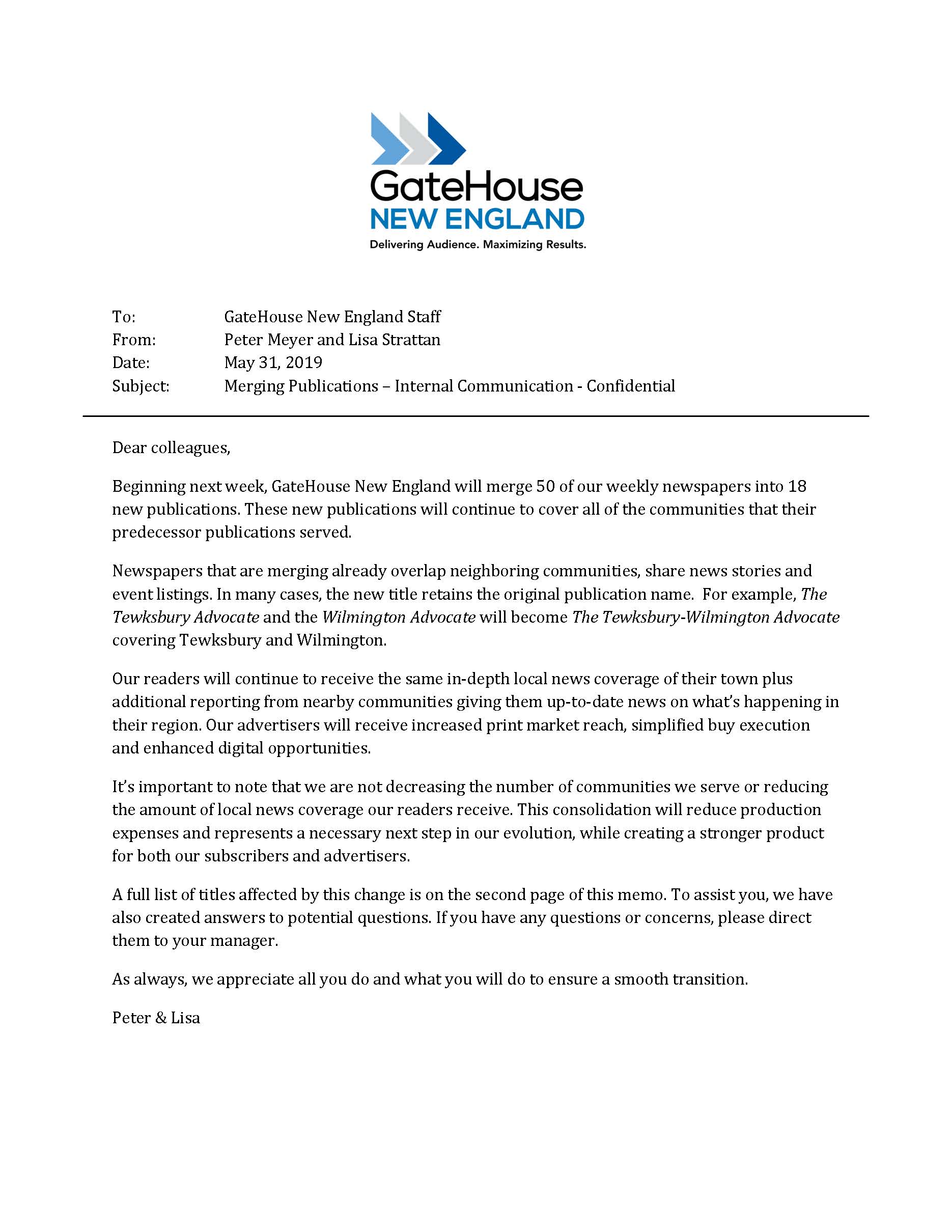 The internal memo released on Friday was sent to GateHouse staff -- and Northeastern Journalism Professor Dan Kennedy released the document.