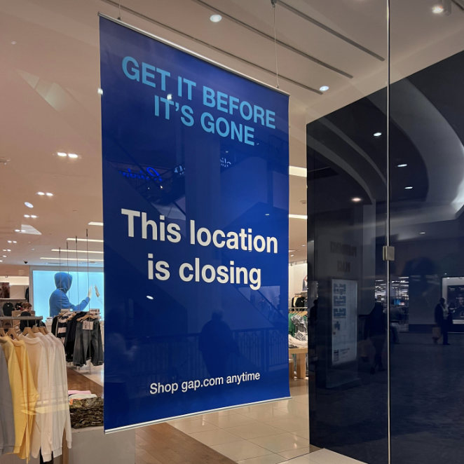 “Get it before it’s gone — this location is closing,” states a sign in the store window.
