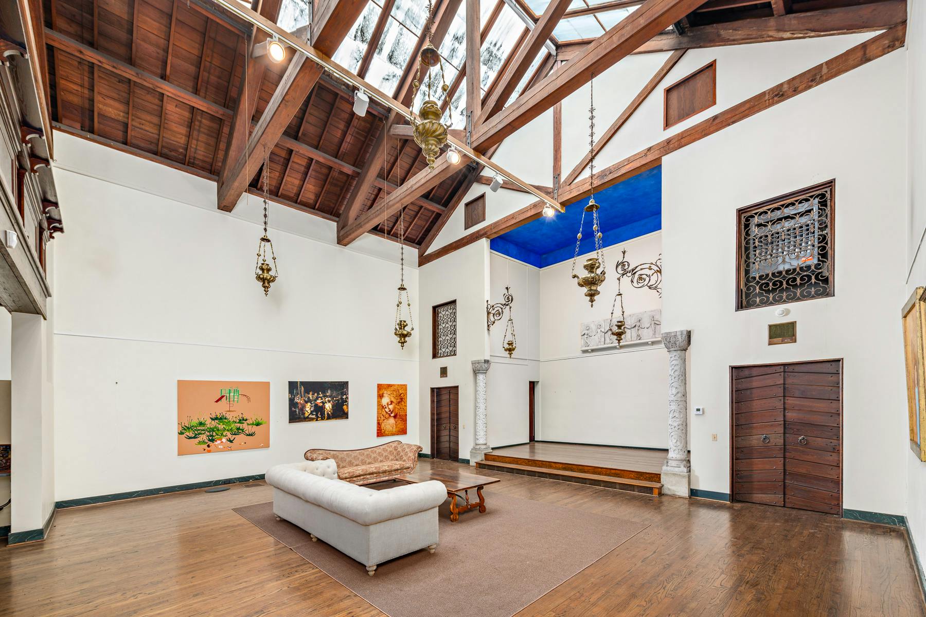From there you enter into one of the most incredible, and rare, architectural spaces ever to exist on an East Side property, which could be used to hold private and public events. Originally built as a ballroom, it also could serve as an incredible art gallery and/or music hall with its small stage & majestic balcony overlooking the room.