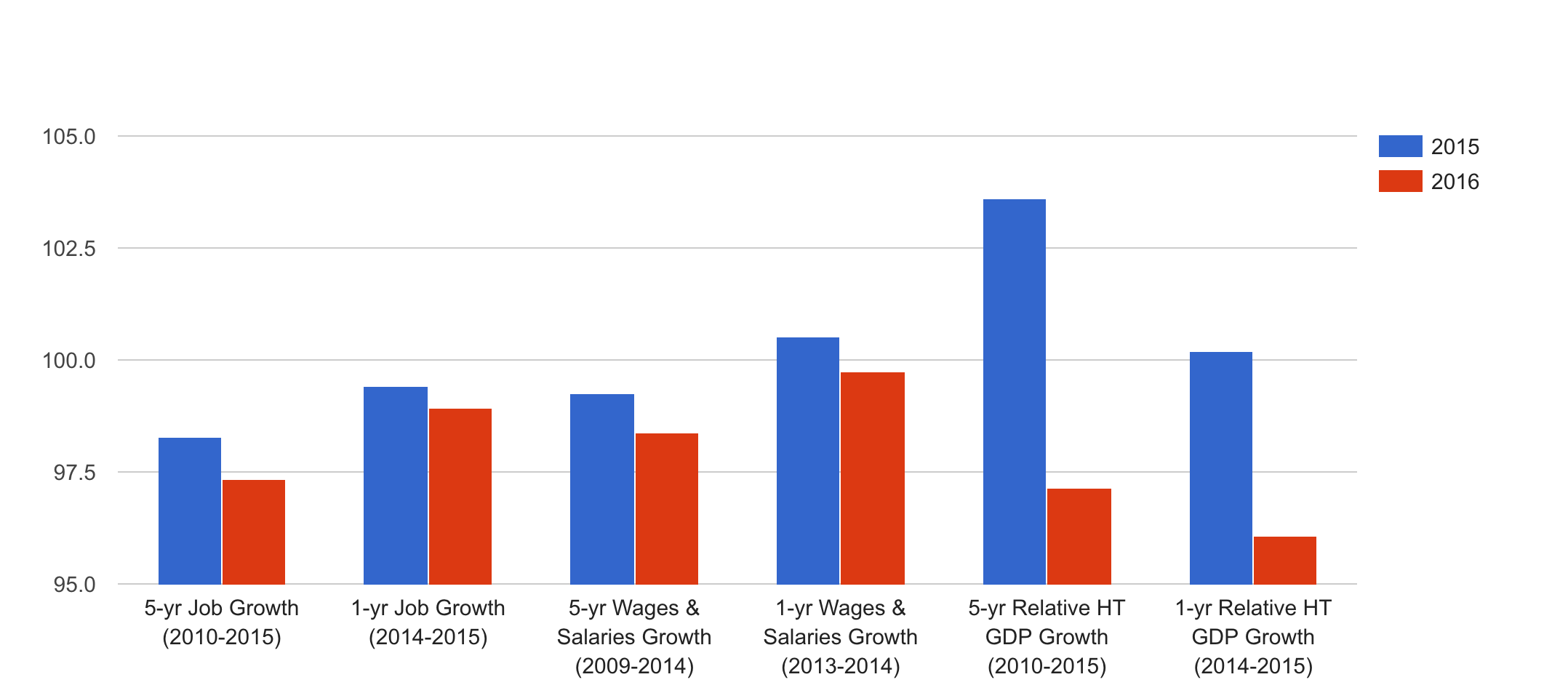 The index ranks U.S. metropolitan areas by how well they are creating and sustaining jobs and economic growth. The components include job, wage and salary, and technology growth. In most years, these give a good indication of the underlying structural performance of regional economics.