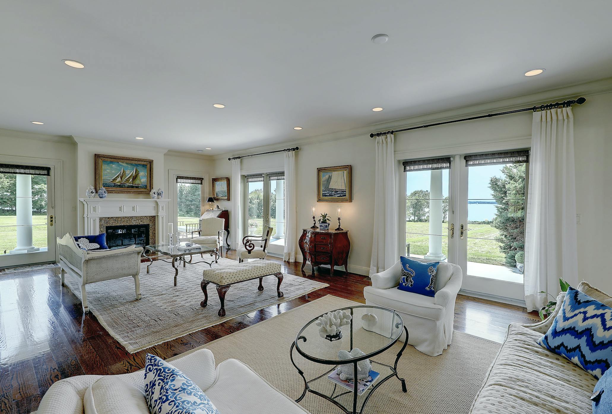 Residents can enjoy sunsets and stunning west-facing views from this private custom-built home set on over three acres on Poppasquash Point.