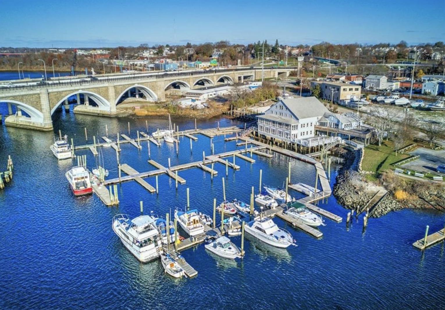 Located in the center of a fast-growing neighborhood bursting with activity, this updated waterfront Restaurant/Marina commercial property provides a 12,000 square foot, two-unit building set on 1.2 acres with 56 off-street parking spaces. Its convenient location next to the historic Washington Bridge allows for scenic views of India Point Park Bridge, Bold Point, Fox Point, and beyond.