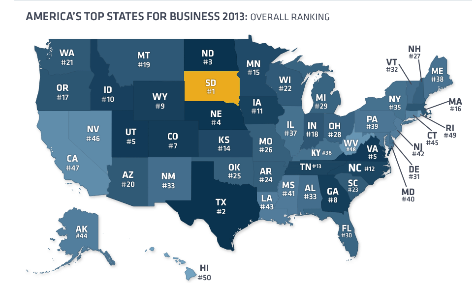 49 is the New 50 -- RI leaped up one spot to 49th in the United States in CNBC's rankings for Top States for Business. No longer is RI last in America - Hawaii is now #50.