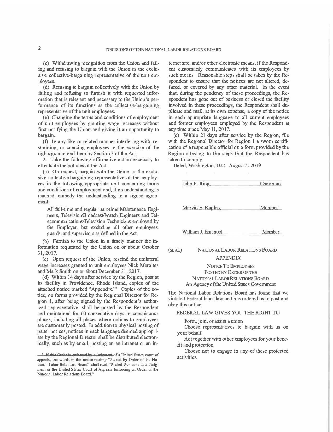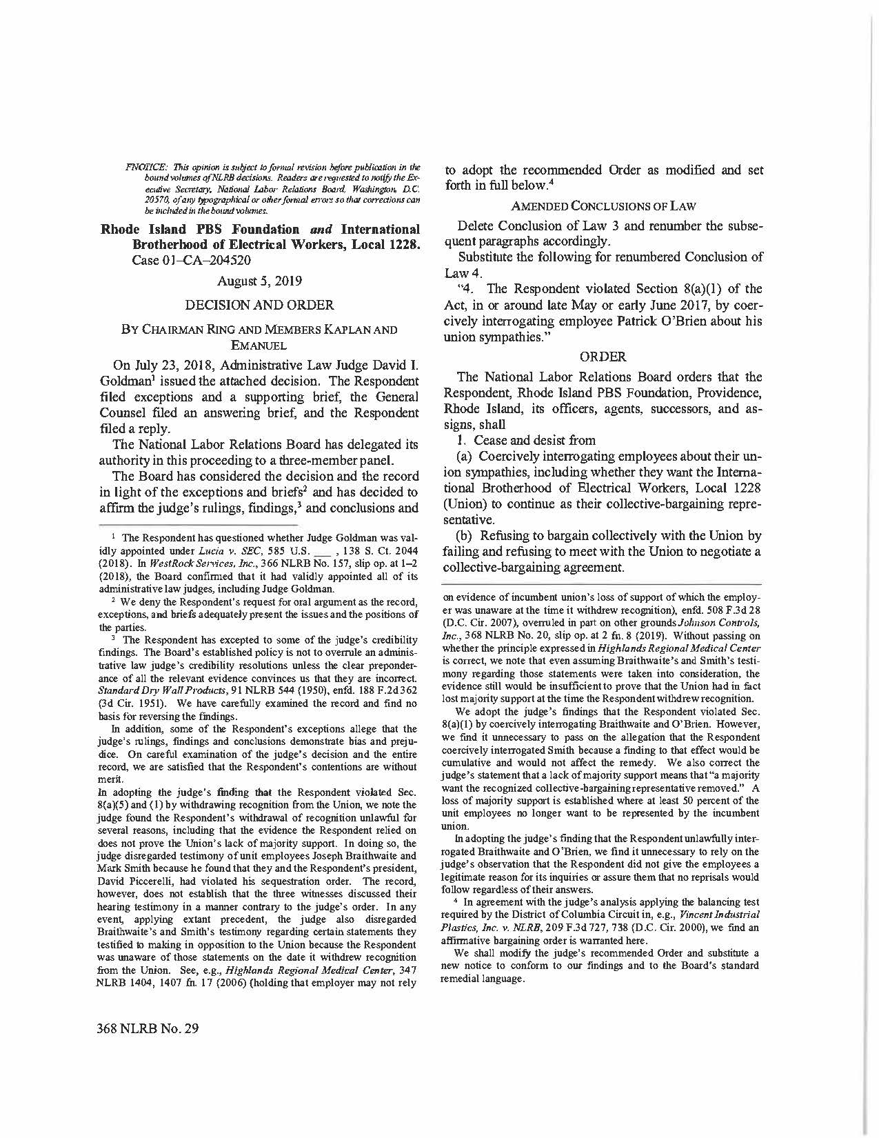 The final decision by the NLRB was rendered after RI PBS had appealed an August of 2018 decision by David Goldman NLRB, who found that RI PBS had violated multiple federal labor standards.