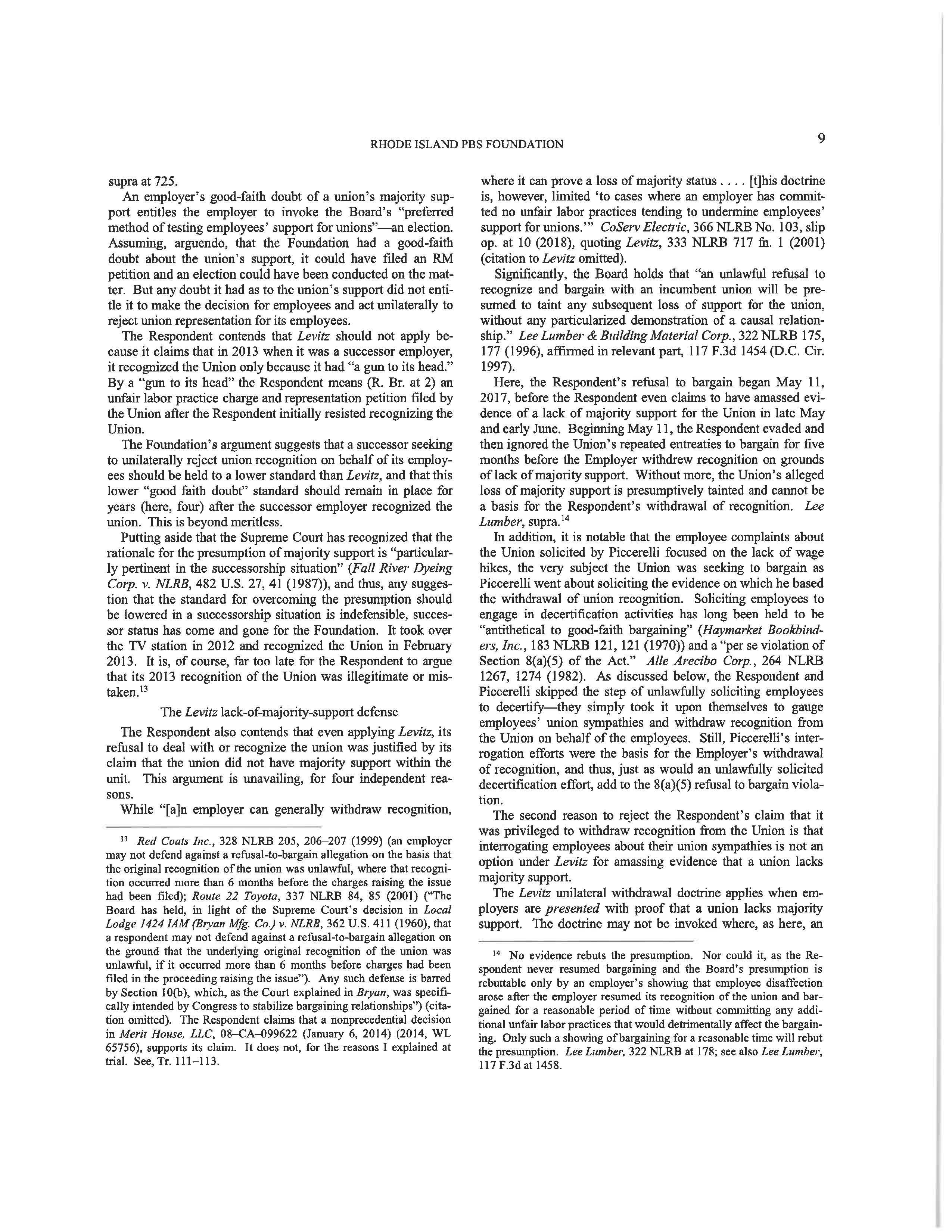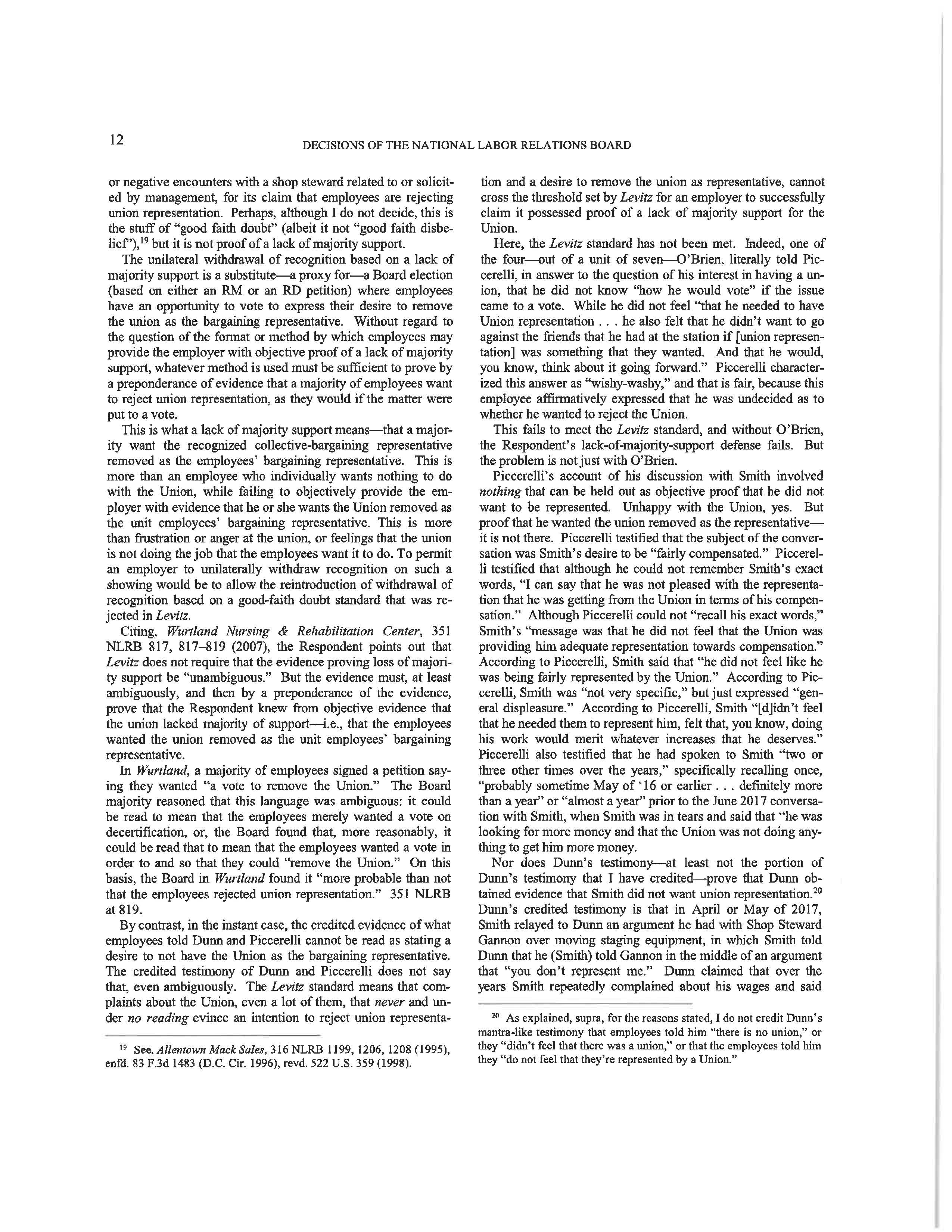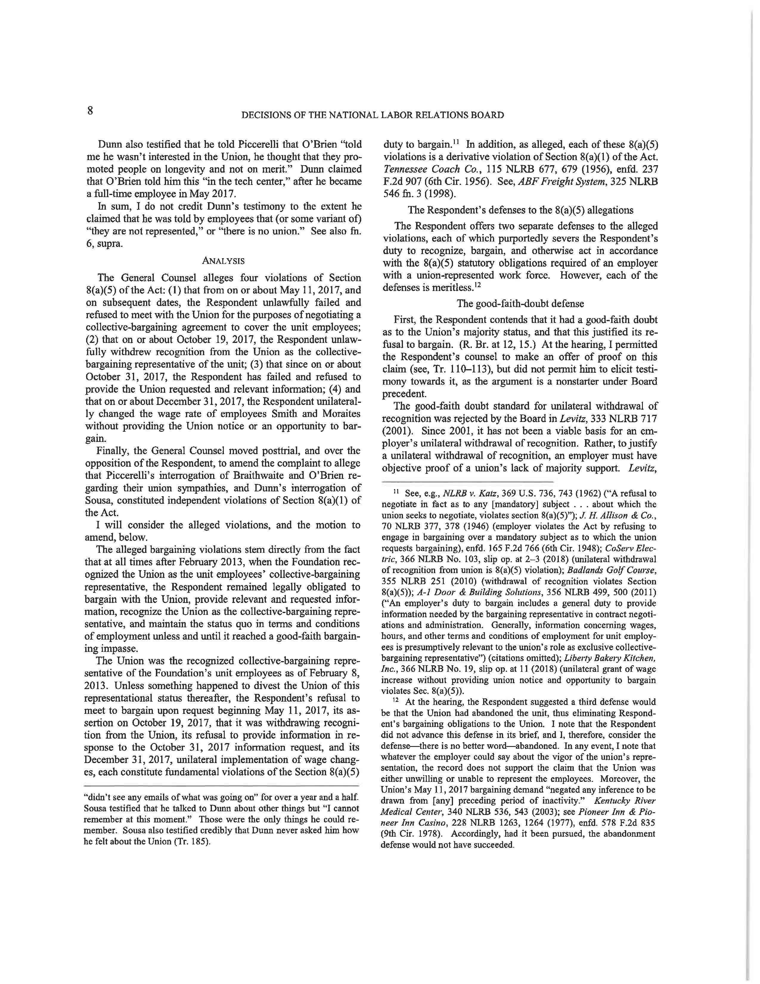 The NLRB found, "Here, there was no employee effort to remove the Union as representative. There was not even a decertification campaign for the employer to unlawfully assist or unlawfully instigate, because there simply was no employee effort to remove the Union. Here, the employer ferreted out employee dissatisfaction, through interrogation, found what it considered (wrongly) to be enough, and on that basis unilaterally withdrew recognition."