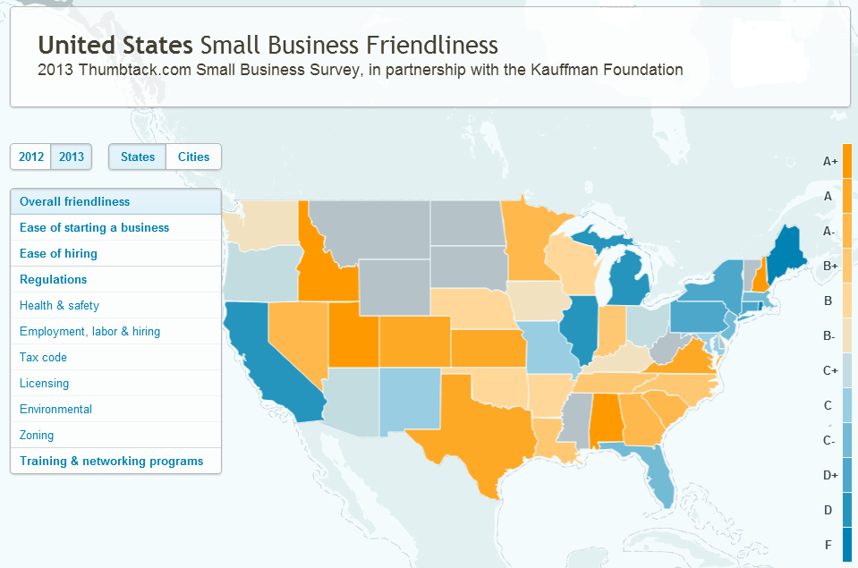 ThumbTack in conjunction with the Kaufman Foundation reports that RI is at the bottom — tied for last — as ranked by small business owners. The Grade Rhode Island received was an F and the same as in 2013. “Small business owners gave California, Rhode Island and Illinois an "F," while Connecticut and New Jersey both earned a "D" grade. Sacramento, Providence and Buffalo were the survey's worst-performing cities as rated by their small business owners.”