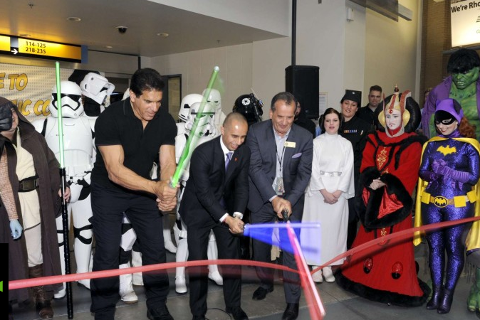Lou Ferrigno and Mayor Jorge Elorza cut the ribbon with lightsabers and open up Comic Con 2015.