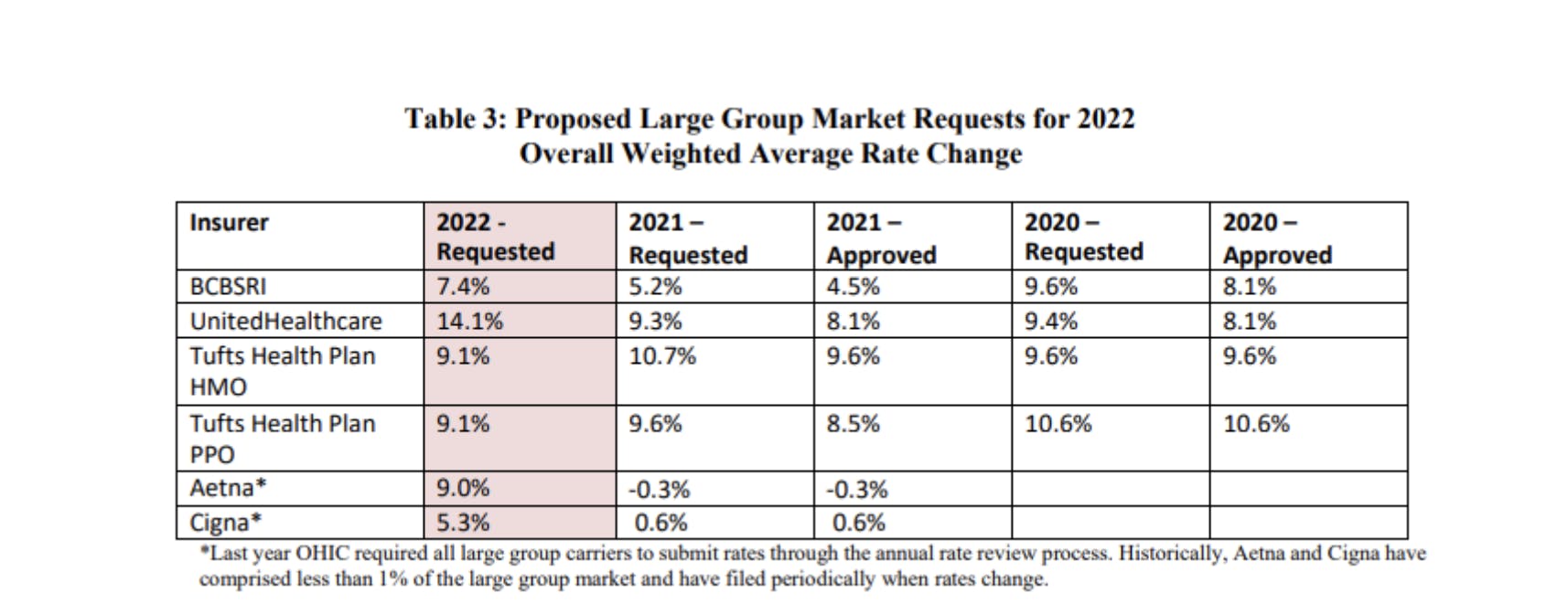 RI Health Insurance Carriers Request 2022 Rate Hikes