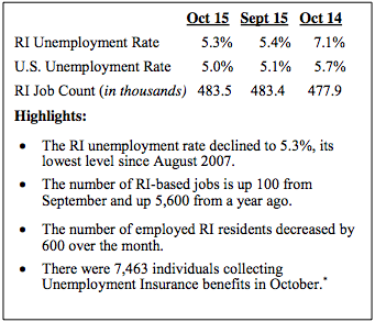 RI Unemployment Rate Dropped to 5.3 % in October